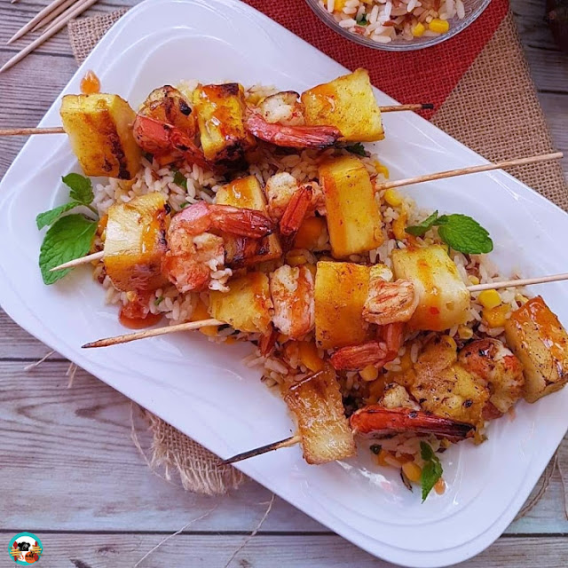 Estas brochetas con langostinos conquistan a todo el mundo tanto por la vista como por el paladar.