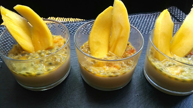 CREMA DE VAINILLA CON FRUTA DE LA PASIÓN Y MANGO (sin azúcar) #COOKINGTHECHEF