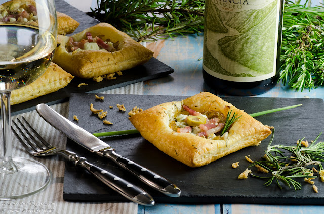 Del término ?aperire? en latÃn (abrir en español) deriva la palabra aperitivo que significa bocado pequeño para abrir el apetito. Mejor definición creo que no hay para explicar cómo una porción pequeña de comida estimula las ganas de seguir comiendo, siendo el primer paso en la degustación de un menú elaborado en casa o fuera de ella. En general, con los entrantes de toda la vida se acierta y son del agrado de casi todo el mundo: hablo de la tortilla de patatas, del embutido y de los pinchos que acompañados de una cerveza o vino nos alegran el comienzo de la comida. Pero no está mal lucirse de vez en cuando y ofrecer ideas diferentes, fáciles de preparar y que cumplan la función de pequeño bocado apetecible y sabroso. Este entrante se transforma también en una cena excelente, rápida y ligera, si se prepara con porciones de hojaldre más grandes y con más cantidad de ingredientes. Estos varÃan según los gustos y las ganas de comer que se tengan; asà pues son ricos los quesos de cabra o feta, el tomate seco, la cebolla caramelizada, el bacon, la mermelada de pimientos o de tomate, las anchoas y aceitunas y cualquier otro alimento que se nos ocurra y que tengamos a mano. Yo los he hecho en varias ocasiones y los que presento hoy son mis favoritos. La parte más entretenida de esta receta es el confitado de la cebolla que sin ser un proceso difÃcil requiere echar un buen rato y tener paciencia para que el resultado sea el esperado. Se puede confitar con ...
