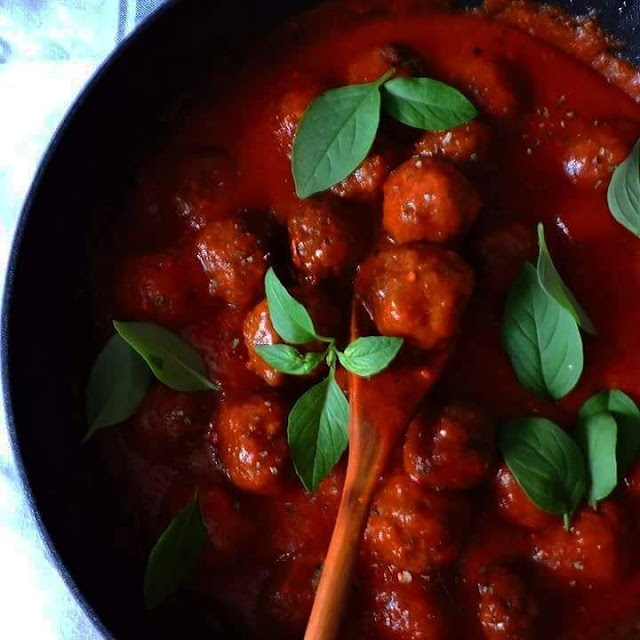 Los meat balls con salsa de tomate que van bien con tantas cosas. (y lo mejor de todo es una barra de pan caliente)