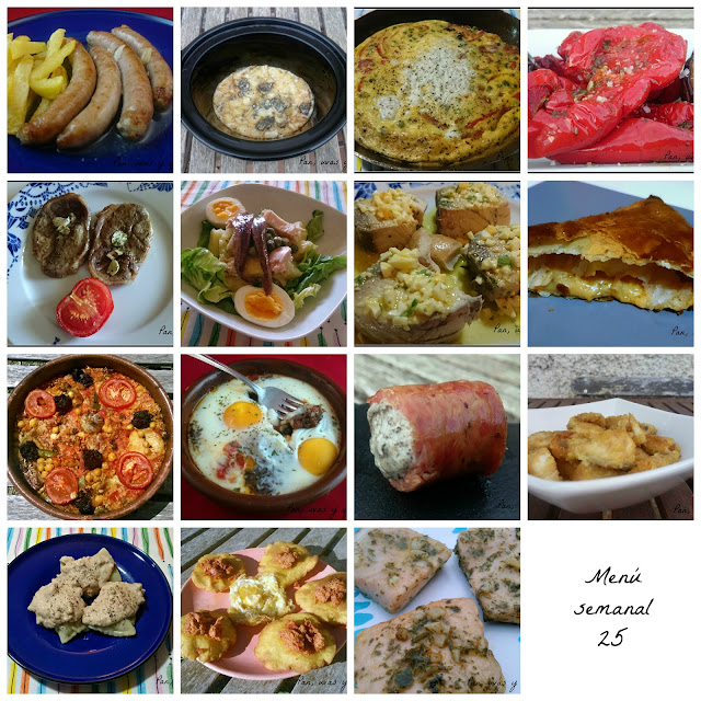 MENÚ 25 COMIDA Verduras asadas aliñadas Maultasche con salsa de patata Guisantes al tombet Patatas estofadas Ensalada de bulgur Arroz al horno de Benicassim Ensalada de Gennaro Bonito a la vinagreta Salchichas con salsa de apio Gratinado de merluza Pollo con leche Salmón a la marinera CENA Ensalada mixta Cazón en adobo con patatas rellenas de bacon y setas Carne al horno Ensalada mixta Hojaldre relleno de bechamel Longaniza rellena de mousse de champiñones con patatas a la crema de Cabr...