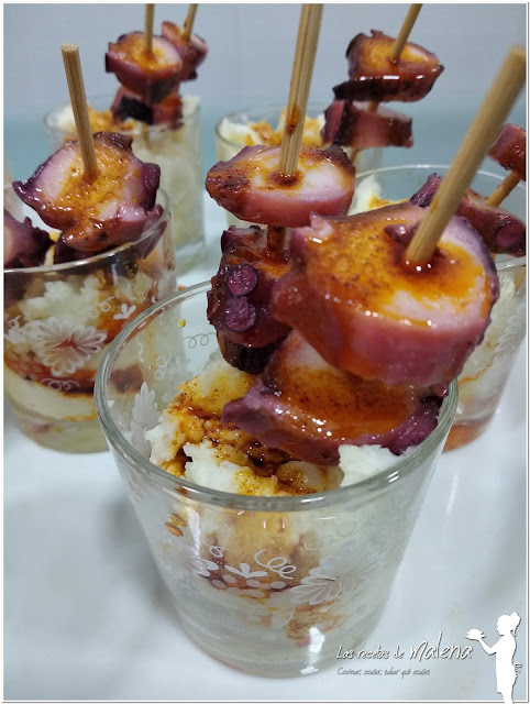 Es increÃble como pasa el tiempo y un año más estamos pensando en las comidas de Navidad. En casa es habitual comenzar con pinchos varios que sean vistosos y por supuesto muy ricos, que estamos en dÃas de fiesta. Este pincho de pulpo reúne todas estas condiciones además de ser muy rápido y muy sencillo de preparar que en estos dÃas se agradece.