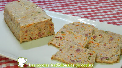 La elaboración se hace con carne de pollo picada, aunque si quieres también puedes mezclarla con otras carnes para dar le un toque diferente, como carne de cerdo que tiene mas grasa. Respecto a las verduras también es una cosa un poco personal, si alguna no te gusta o la quieres cambiar, ya sabes que no hay problema. Las especias como siempre te digo puedes utilizar las que prefieras o tengas disponibles, eso ten en cuenta que esta terrina tiene un sabor suave, por lo que no pongas especias que se puedan comer todo el sabor de los otros ingredientes.