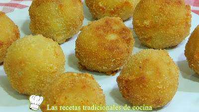 INGREDIENTES300 g de arroz (el arroz tiene que estar ya cocido)150 g de queso rallado50 g de harina de trigo2 Huevos50 g de pan ralladoAceite para freÃr(4 Personas)