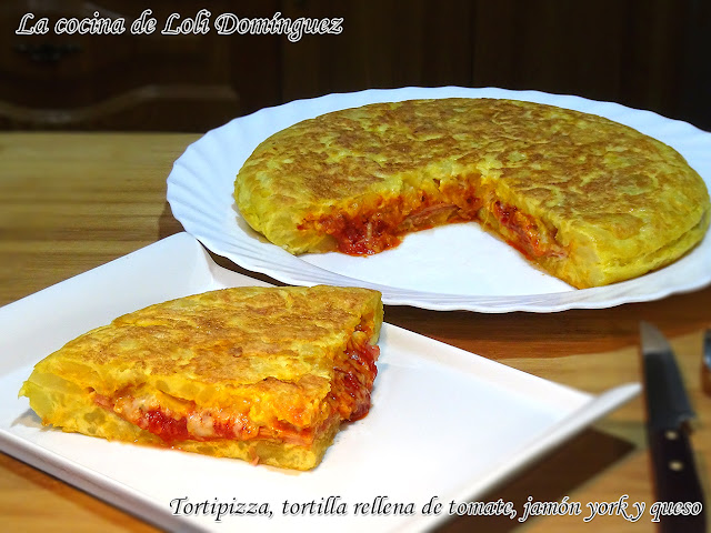 Tortipizza, tortilla rellena de tomate, jamón york y queso, es la mezcla de las dos comidas favoritas de mi sobrino y he de decir que esta súper deliciosa, probarla que seguro que os gustara.