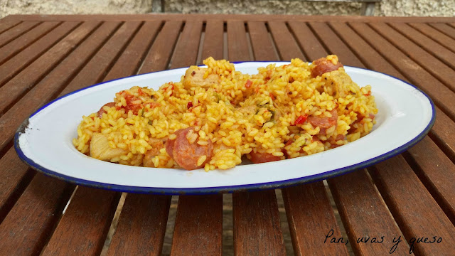 Es curioso como se puede sacar un plato tan rico de las sobras de otro. En el caso de este arroz: todo surgió para aprovechar unas brochetas de cerdo que habÃa hecho unos dÃas antes...¡qué le voy a hacer si tengo un problema para calcular cantidades!.