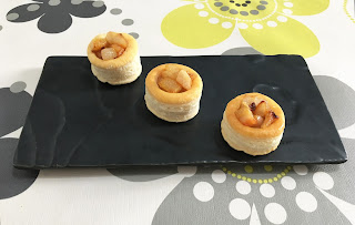 Volovanes rellenos de queso de cabra, nueces y pera caramelizada