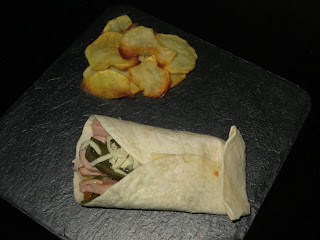 Ahora cerramos como más nos guste, enrollándola o doblándola y ya está lista para servir. En este caso lo he acompañado de unas patatas chips caseras, que están para chuparse los dedos.